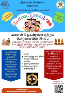 இஸ்கான் சென்னை அமைப்பு சார்பில், கோடை கால முகாம் வரும் 28ம் தேதி துவங்குகிறது.